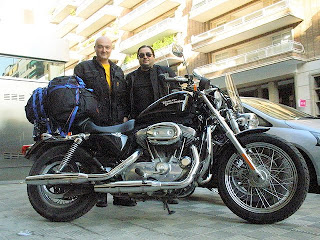 Primera etapa finiquitada, conforme a lo previsto. Objetivo cumplido. Etapa técnica sin mayores incidencias. Con la salvedad, claro, de que el compañero de la Harley (una sporters tenía que ser) llegó con algún retraso sobre la hora convenida al sitio convenido. Peor para él, porque le tocó pagar el desayuno, con invitación incluida a dos espontáneos muy queridos que se nos sumaron al incio de la jornada. Cosas que pasan por quedar para desayunar en la misma calle donde se encuentra la sede del puesto de trabajo. Por lo demás, nada reseñable desde el punto de vista rutero. La autovía, sin problemas; aburrida como su puñetera madre. Bonita imagen de las ruinas romanas de Mérida sobre el Guadiana, vistas de reojo, claro.